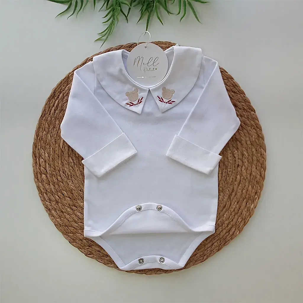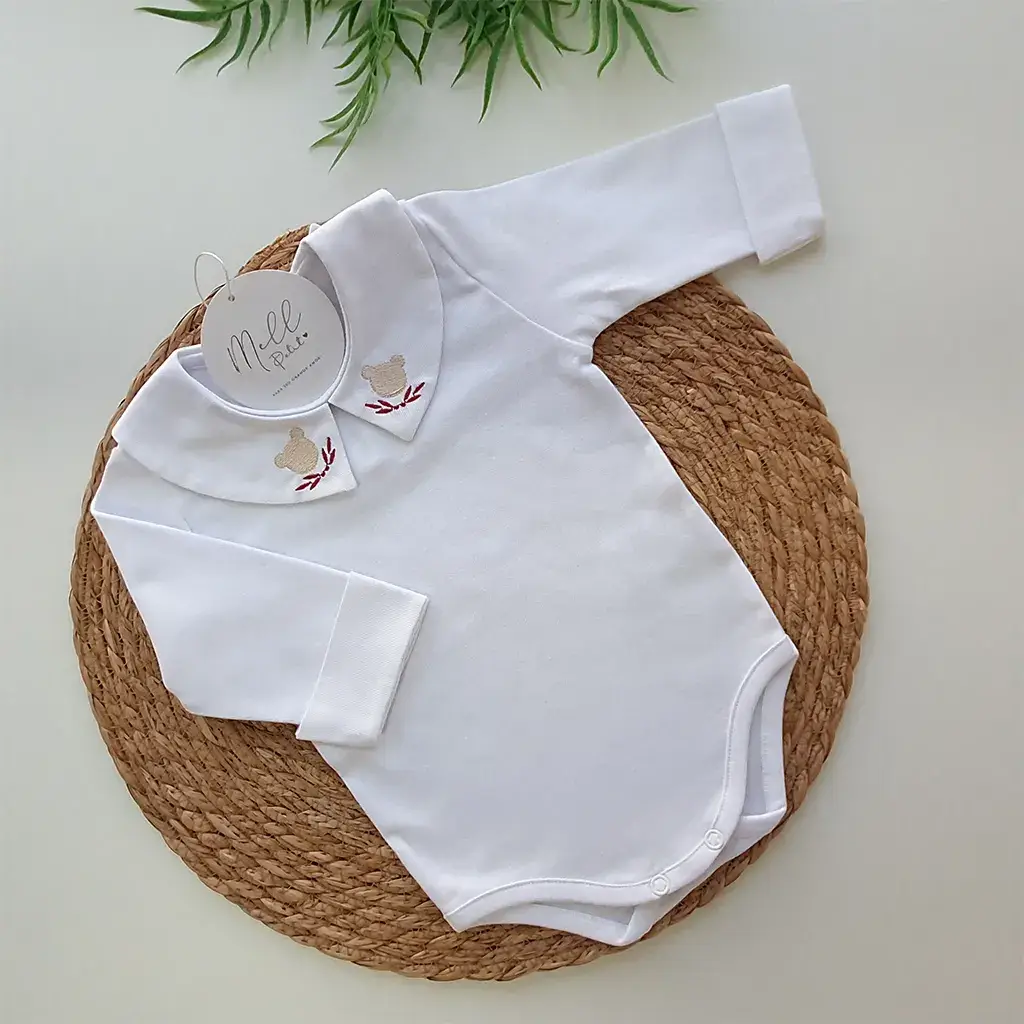 Pontos a destacar: a golinha arredondada bordada ursinho e punhos sobrepostos destacam a delicadeza e toque super macio. Suas aberturas por botões de pressão oferecem conforto para o bebê no momento da troca de fralda. É perfeita e uma linda combinação com a saída de maternidade.