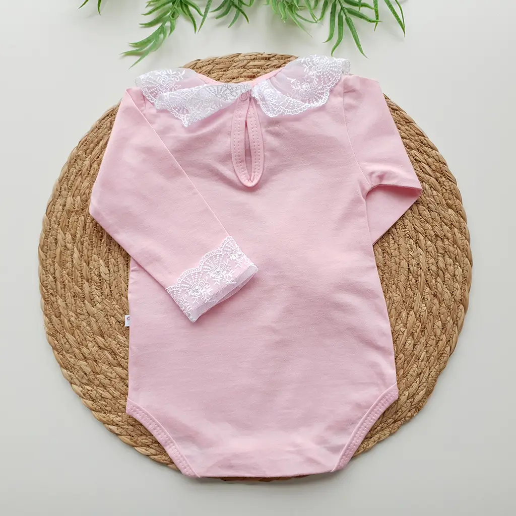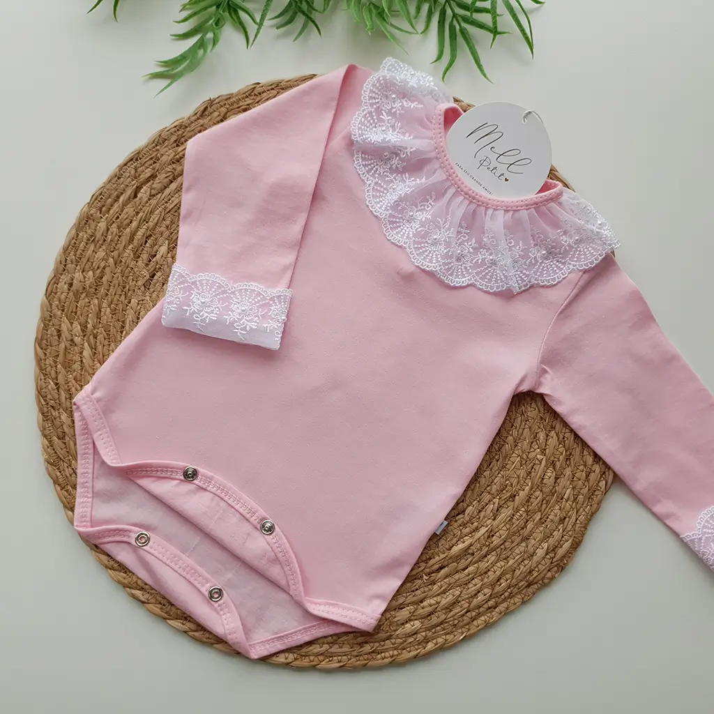 Pontos a destacar: a golinha e punho sobrepostos destacam a delicadeza da renda e bordado. Suas aberturas por botões de pressão oferecem conforto para o bebê no momento da troca de fralda. É perfeita e uma linda combinação com a saída de maternidade.
