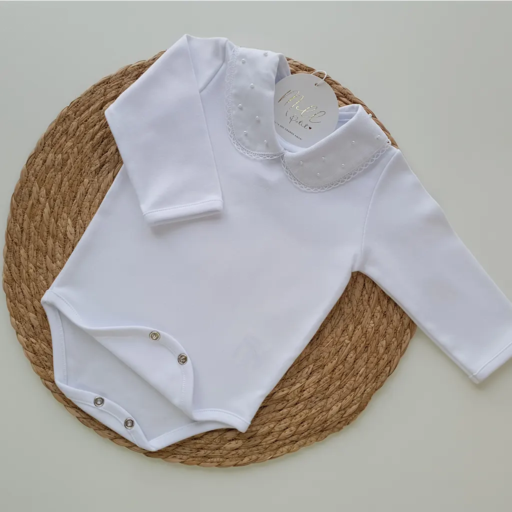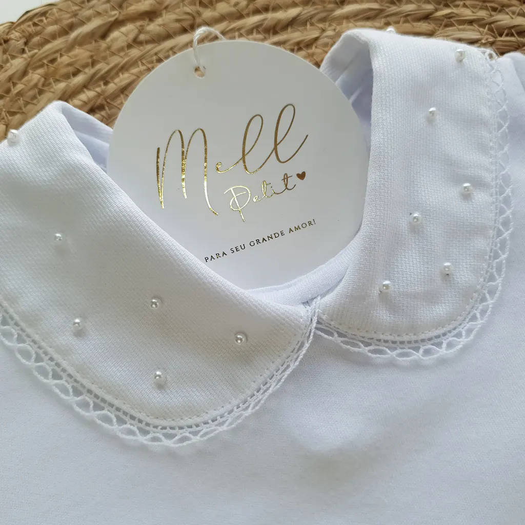 Pontos a destacar: a golinha trabalhada com mini pérolas destaca a delicadeza e toque super macio. Suas aberturas por botões de pressão oferecem conforto para o bebê no momento da troca de fralda. É perfeita e uma linda combinação com a saída de maternidade.
