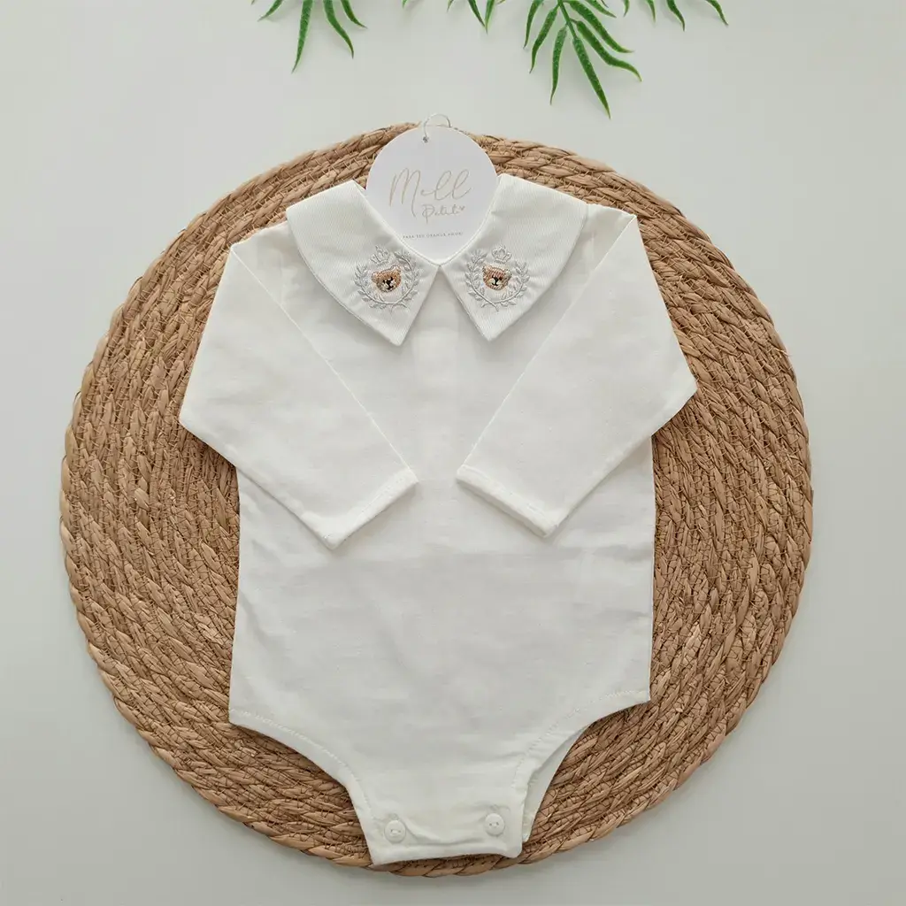 Pontos a destacar: a golinha bordada de ursinho destaca a delicadeza da peça. Suas aberturas por botões oferecem conforto para o bebê no momento da troca de fralda. É perfeita e uma linda combinação com a saída de maternidade.