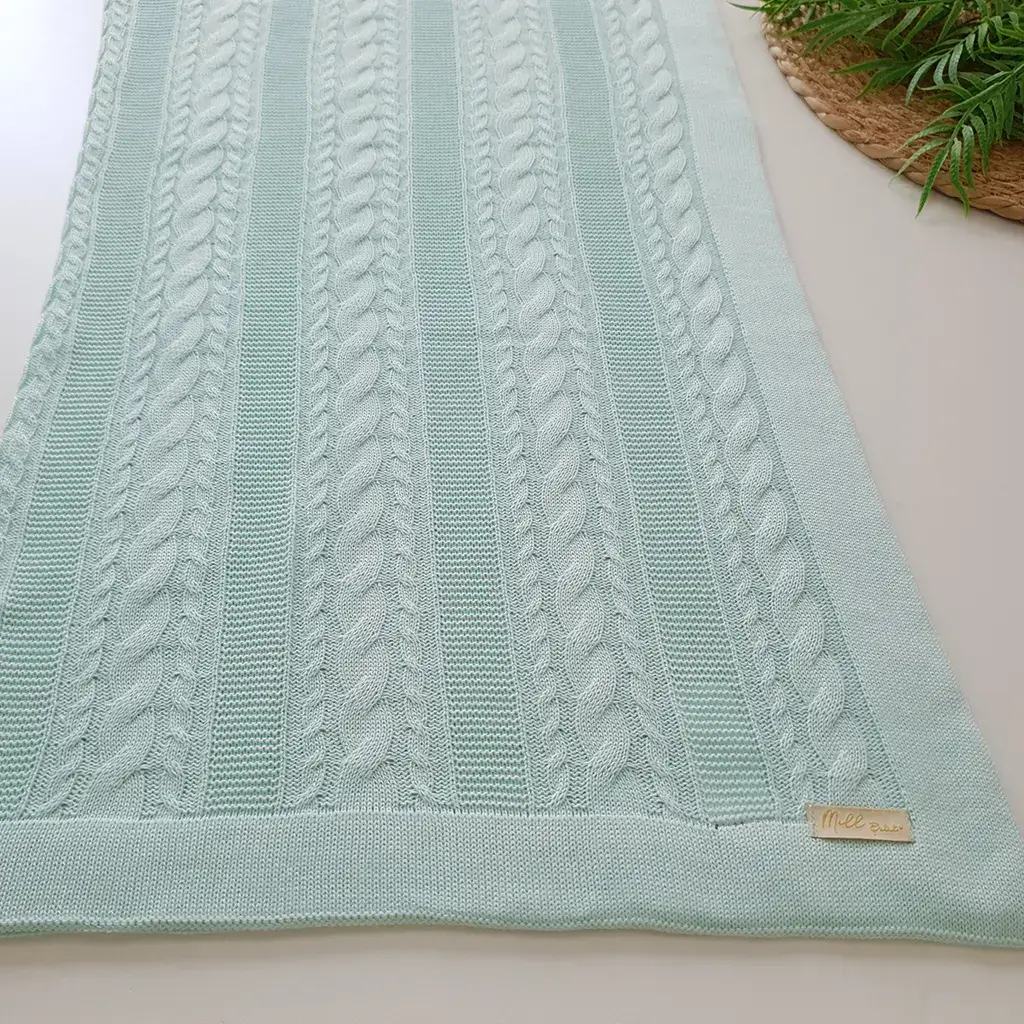 Manta de tricot com a mesma cor e trama do macacão, medindo aproximadamente: 80 x 80 cm.