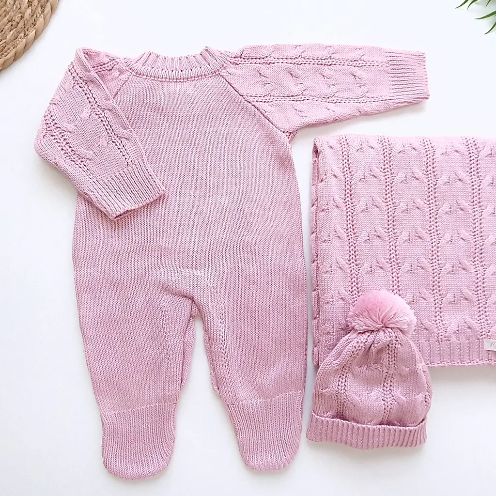 Manta de tricot coordenada com o macacão, medindo aproximadamente: 80 x 80 cm.