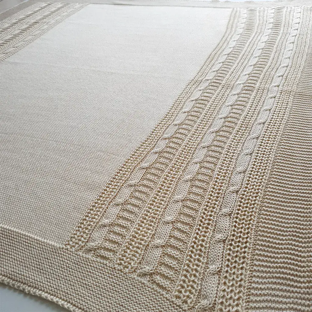 Manta trama trabalhada coordenada com o cardigan , medindo aproximadamente: 80 x 80 cm.