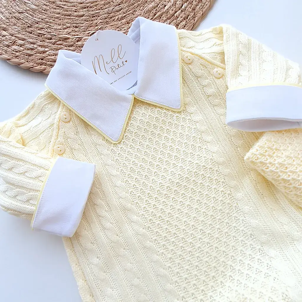 Peças de qualidade confeccionados em tricot artesanalmente, podendo apresentar pequenas variações em tonalidade, costura e bordados.